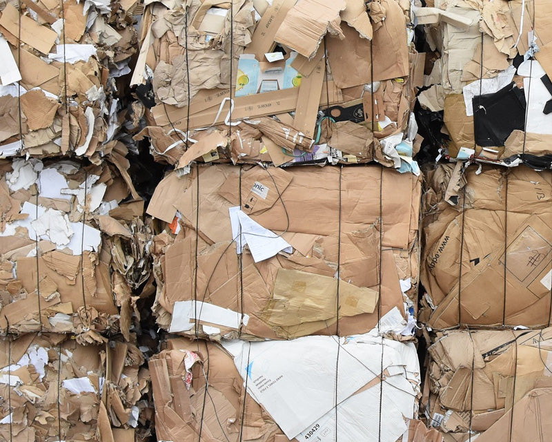 At Firepot we have invested in a compactor which creates 100kg bales from our refuse cardboard. These are stored in our warehouse until we have four tonnes ready to collect.